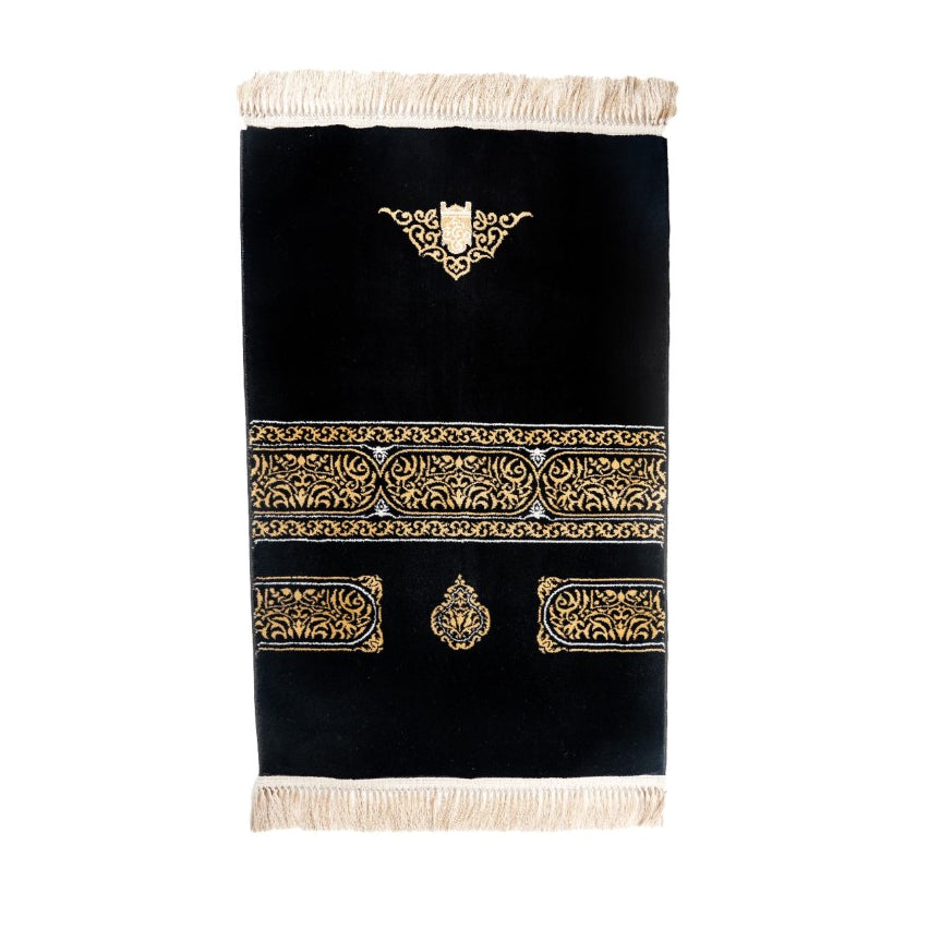 Al Rawdah Kaaba-Inspired Premium Prayer Mat – Kiswa (Black and Gold) 13mm