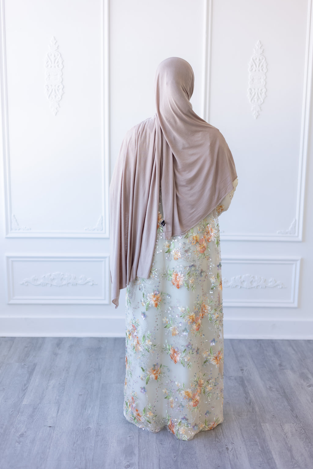 Aurora Bloom Glam Abaya – Creamy Bluff