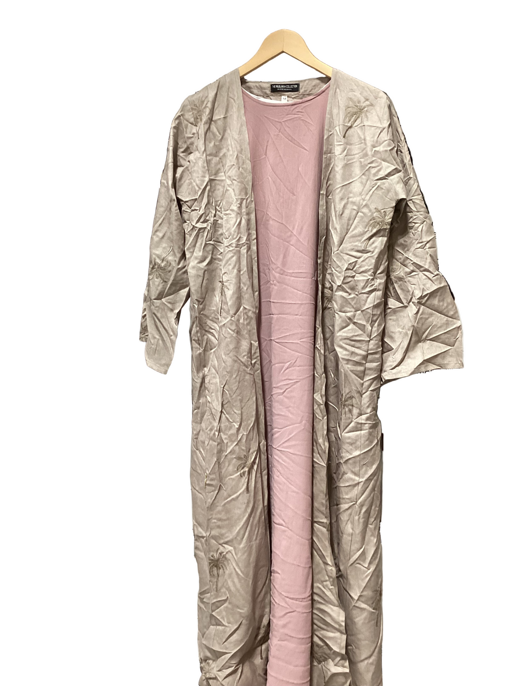 CLEARANCE SALE Linen Embroidered Palm Tree Design - (Dusty Pink)- 17