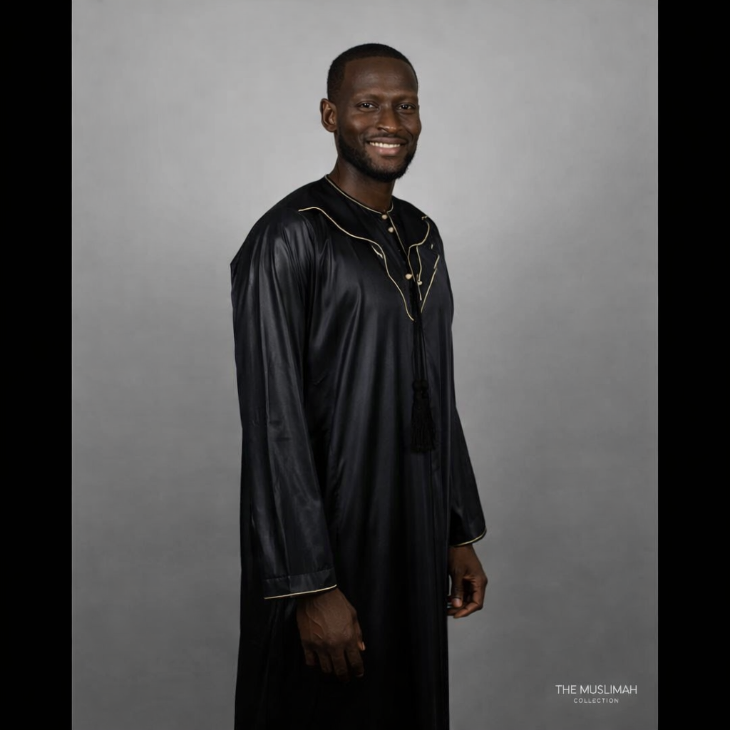 Embroidered Custom Made Emirati Thobe Style (Black and Gold)