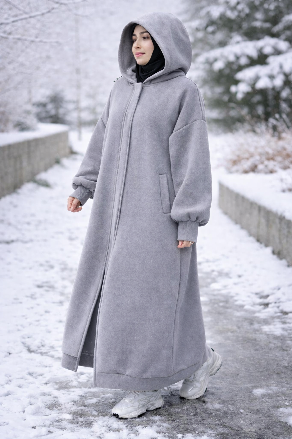Premium Hooded Winter Abaya - Light Grey (360 GSM, 100% premium cotton)