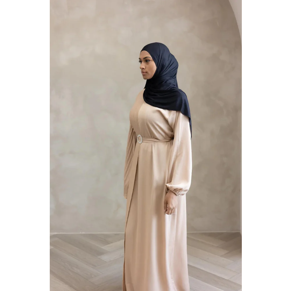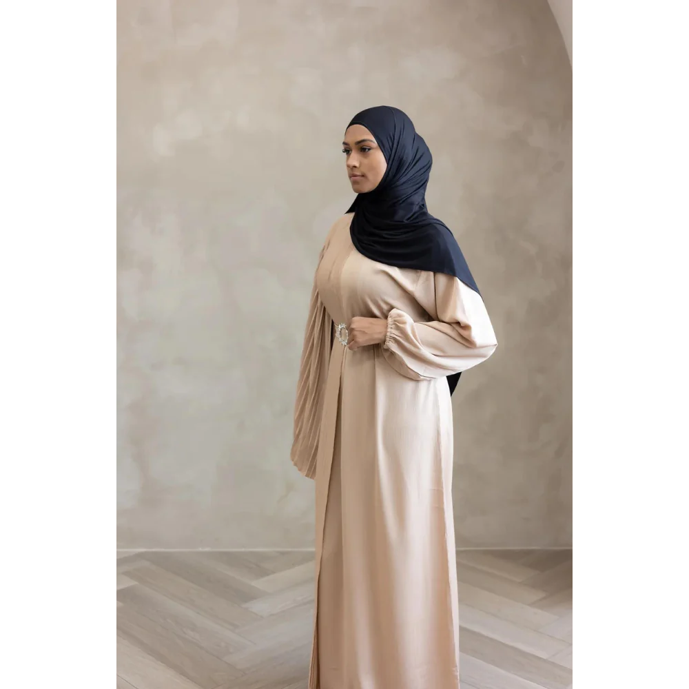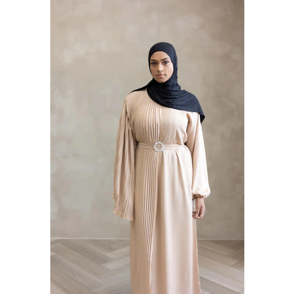 Sale Sawda Pleated Abaya with Stone Belt (Butter)