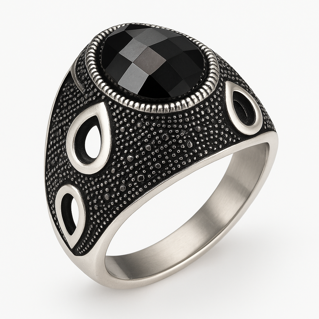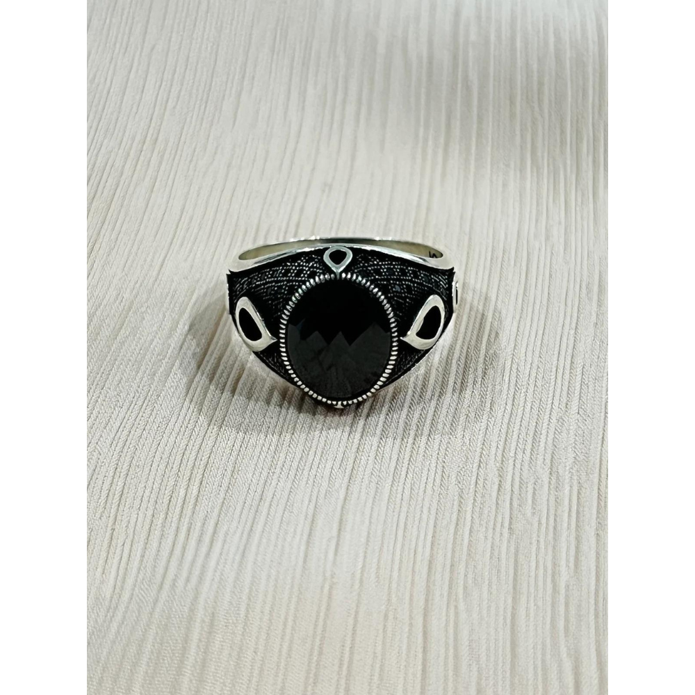 Teardrop Obsidian Sterling Silver Mens Islamic Ottoman Ring