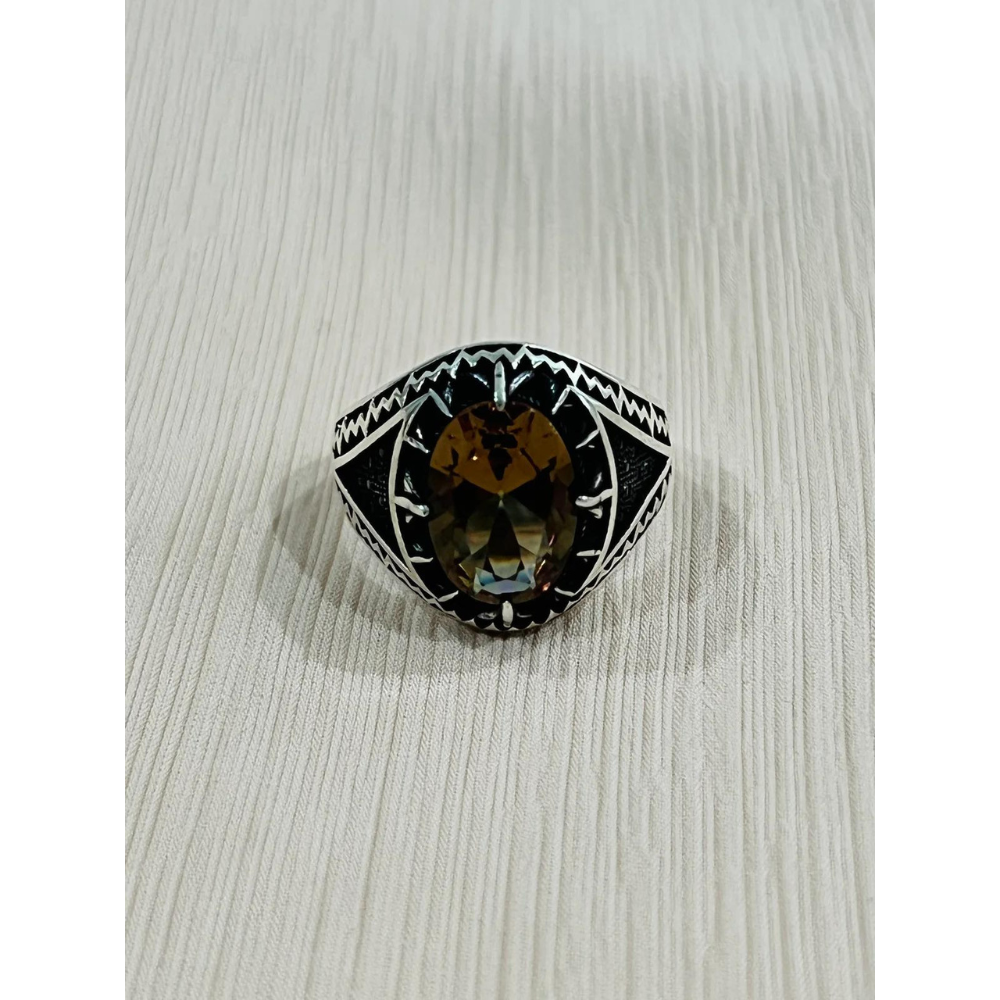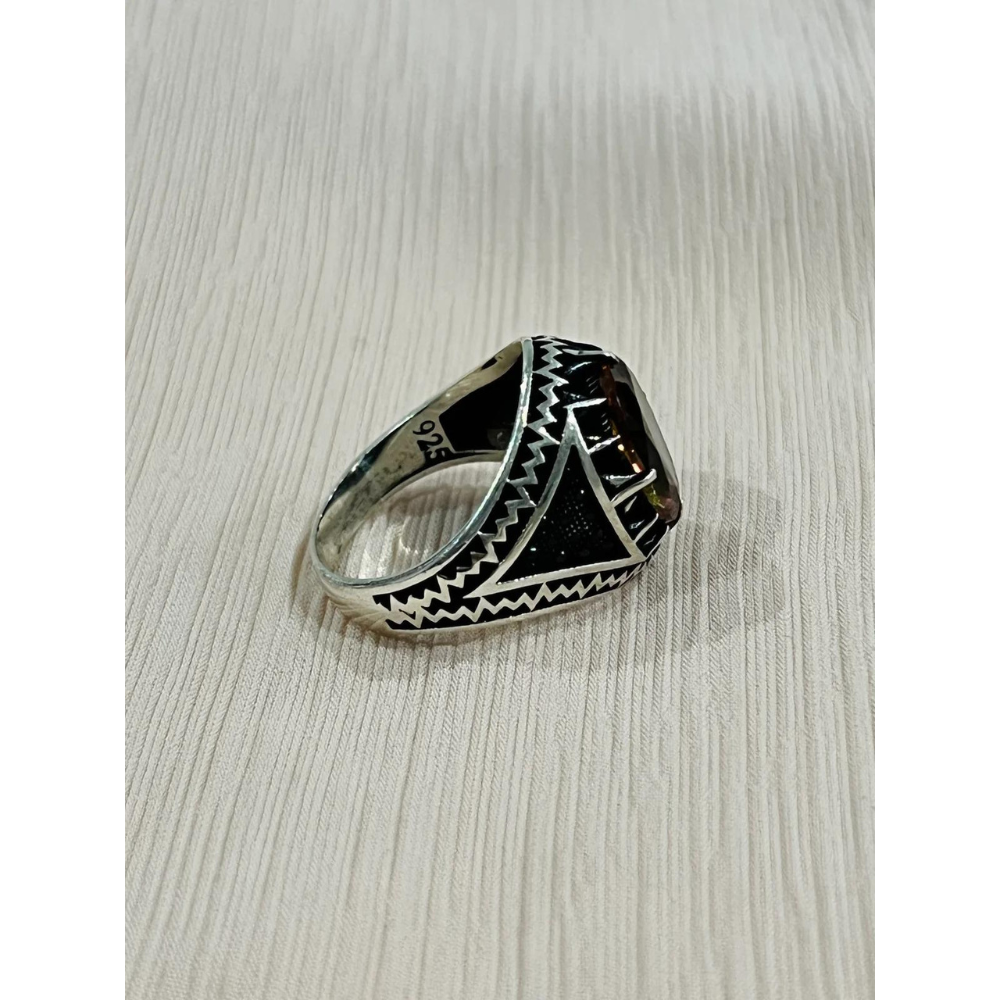 Topaz Axinite Sterling Silver Mens Islamic Ottoman Ring