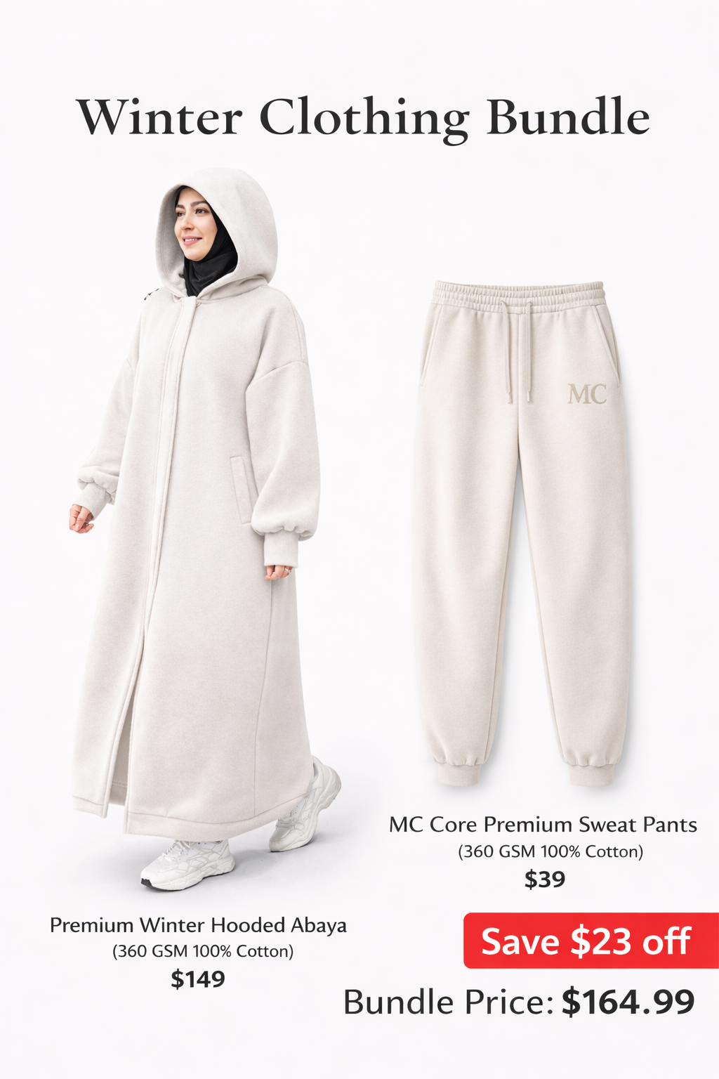Premium Hooded Winter Abaya - Off White (360 GSM, 100% premium cotton) (Size): 52