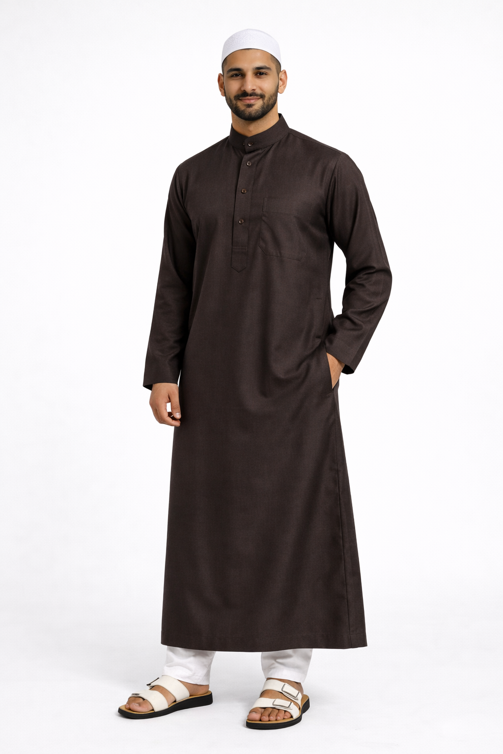 Zubair Collection – Limited Edition Saudi Collared Thobe - Dark Brown